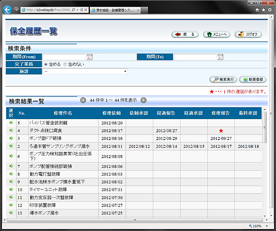 - 施設、設備、工事の各台帳閲覧や登録・編集を行います。