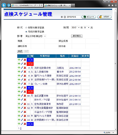 - 月間、年間等の点検スケジュールを作成・回付・供覧し、進捗状況等を全員で情報共有できます。