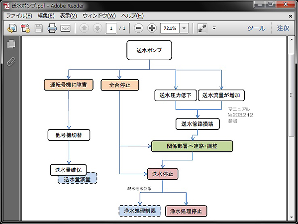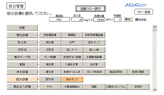 - 施設、設備ごとに震災や障害時の緊急対応をフロー表示します。
